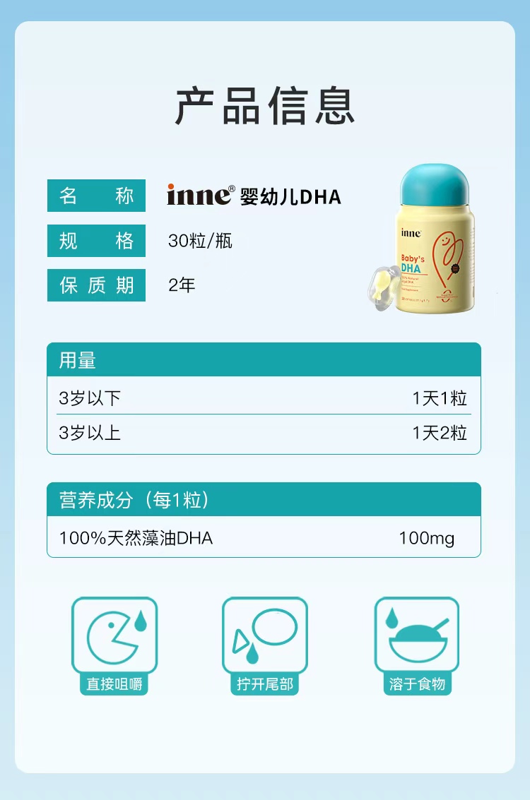 【带防伪】INNE藻油DHA软胶囊 30粒/罐(inne系列产地更新,具体以实际收到为准)