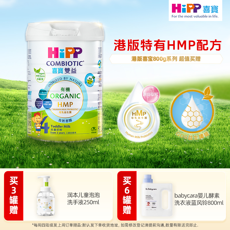 【满赠】港版HIPP喜宝有机双益HMP奶粉4段 3岁以上