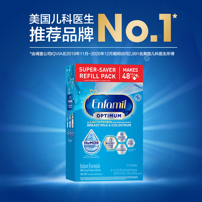 美赞臣美版Enspire蓝臻双HMO婴儿配方奶粉1段补充盒850g