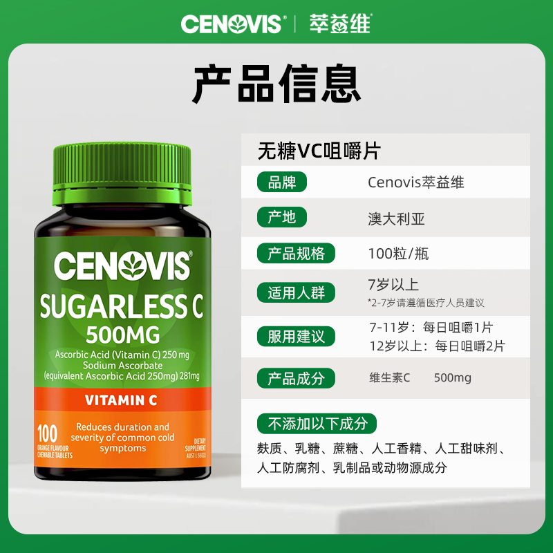 Cenovis无糖维生素C咀嚼片100片